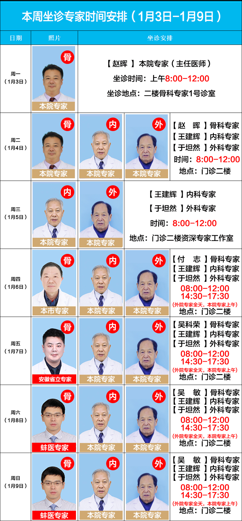 每周五(中科大一附院【安徽省立醫(yī)院】)知名骨病專家在我院門診樓二樓專家門診坐診。