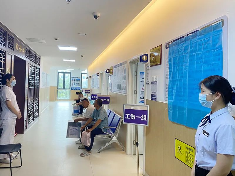 鑒定現(xiàn)場(chǎng)依然采取被鑒定人員錯(cuò)峰到場(chǎng)的辦法進(jìn)行,大家有序在門診大廳內(nèi)等候,鑒定人員分時(shí)段、間隔性進(jìn)入鑒定現(xiàn)場(chǎng)。一站式服務(wù)中心設(shè)服務(wù)臺(tái),核定人員身份,校驗(yàn)是否屬于該鑒定時(shí)間段人員。