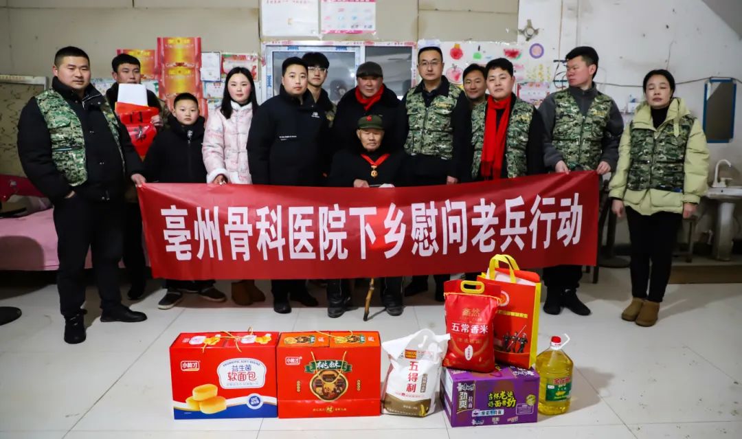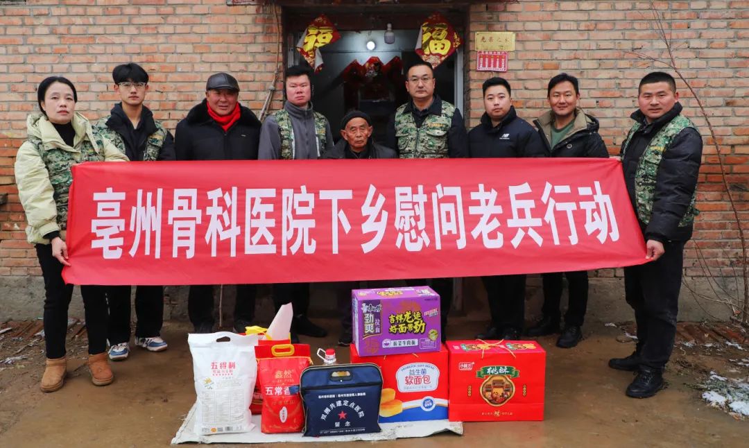 每到一處,慰問團隊都親切詢問他們的生活狀況和健康情況,并代表亳州市擁軍協(xié)會和亳州骨科醫(yī)院向他們贈送了節(jié)日禮品和生活必需品,更表達了對他們無私奉獻精神的崇高敬意。同時,俞霆主任還特意介紹了我院在醫(yī)療健康服務(wù)方面的優(yōu)惠政策和優(yōu)質(zhì)資源,承諾將一如既往地為老兵和軍烈屬提供貼心周到的醫(yī)療服務(wù)。