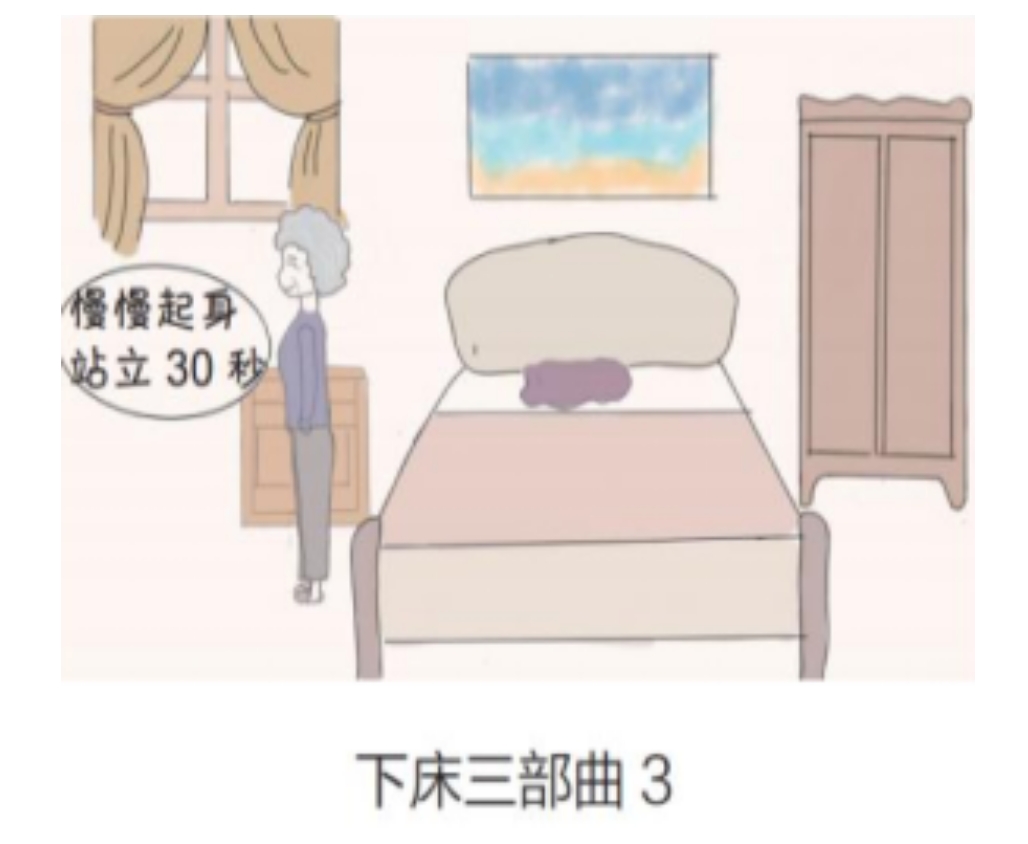 6. 下床時請緩慢起立,轉(zhuǎn)動身體時動作要輕柔舒緩,特別是在服用特定藥物(例如鎮(zhèn)靜催眠藥、麻醉性止痛藥、降壓藥、降糖藥、利尿劑、擴血管藥等)之后,需特別留意行動安全。