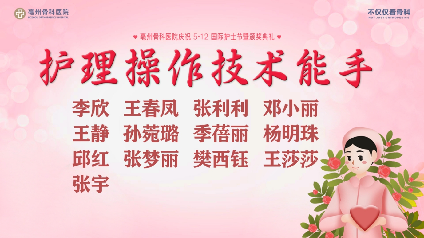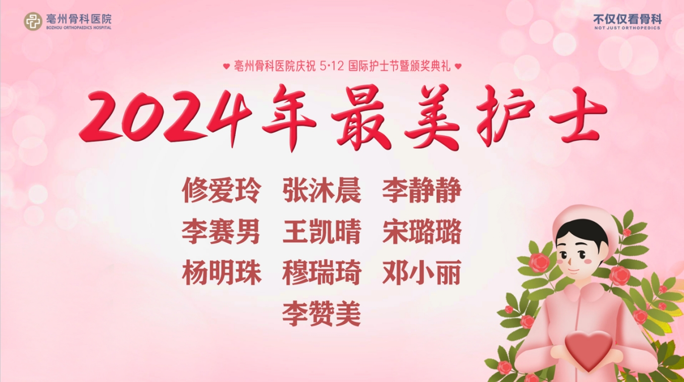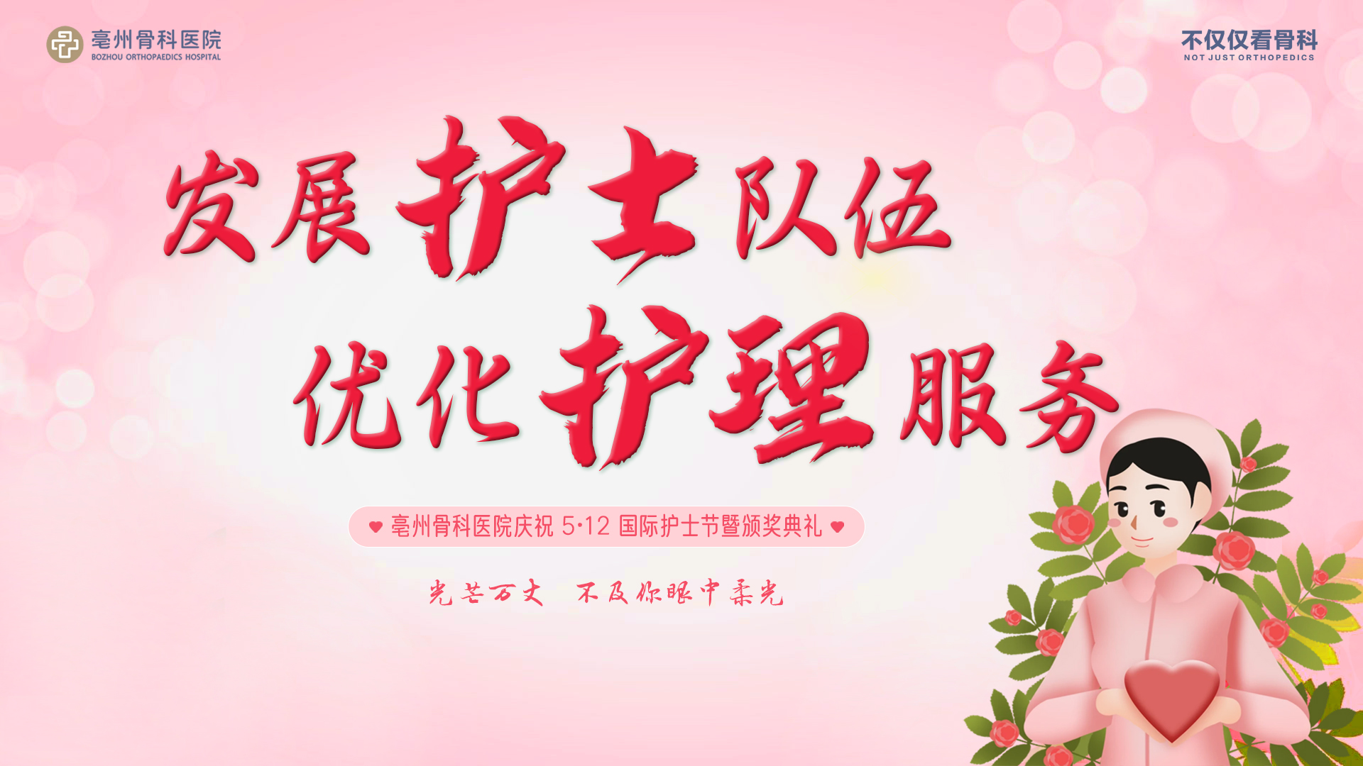 為慶祝第113個(gè)國(guó)際護(hù)士節(jié),弘揚(yáng)南丁格爾精神,激勵(lì)全體護(hù)士愛(ài)崗敬業(yè)、銳意進(jìn)取、拼搏奉獻(xiàn),充分展示亳州骨科醫(yī)院護(hù)理隊(duì)伍良好的精神風(fēng)貌和職業(yè)風(fēng)范,5月10日下午我院隆重舉行以“發(fā)展護(hù)士隊(duì)伍 優(yōu)化護(hù)理服務(wù)”為主題的“5•12”國(guó)際護(hù)士節(jié)慶祝暨表彰大會(huì)。