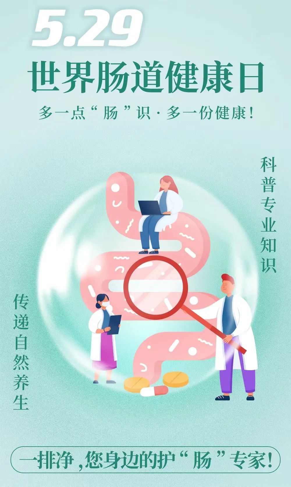1958年5月29日,世界腸道健康組織(WGO)創(chuàng)始人Henry Cohen博士提出,5月29日這一天,將永久地成為“世界腸道健康日”。2005年,世界胃腸病學(xué)組織(WGO) 決定每年的5月29日是“世界腸道健康日”,旨在提醒人們注意身體發(fā)出的警示,注意身體健康。