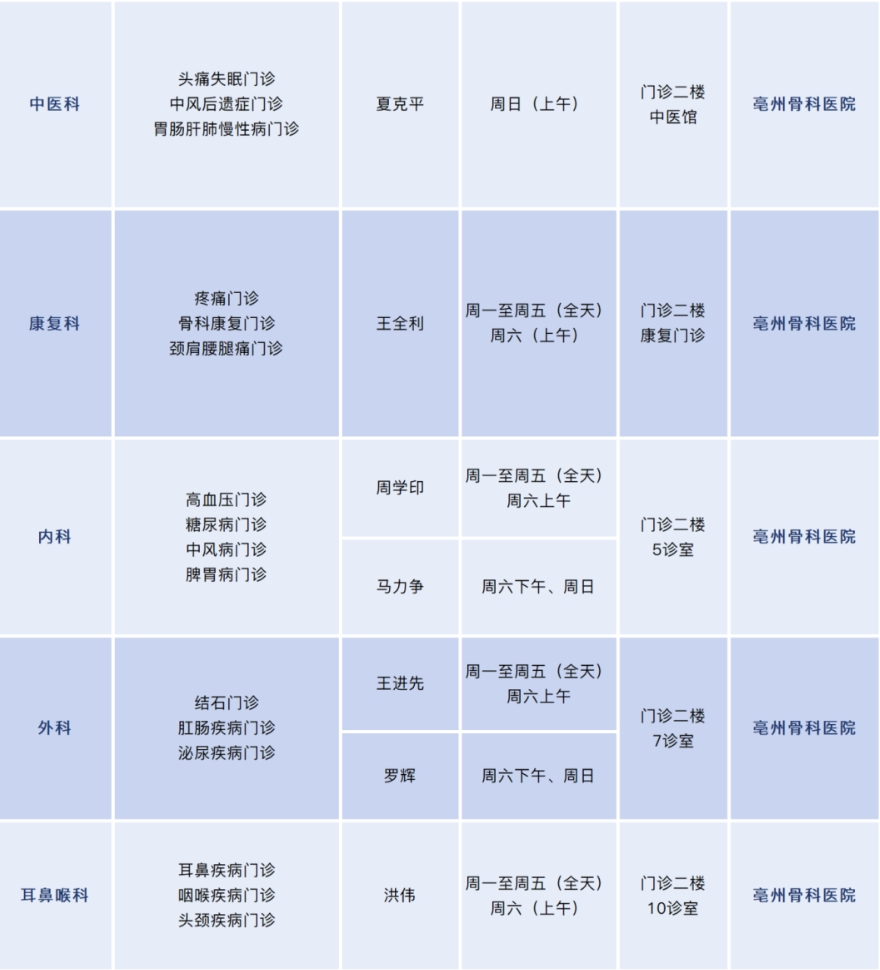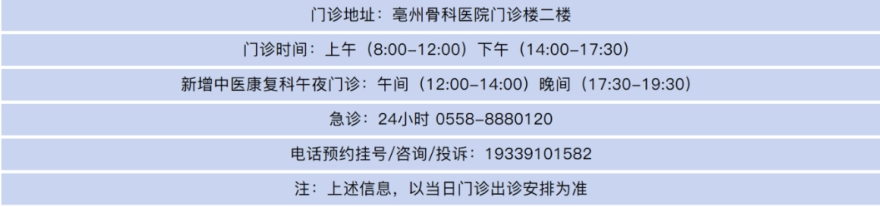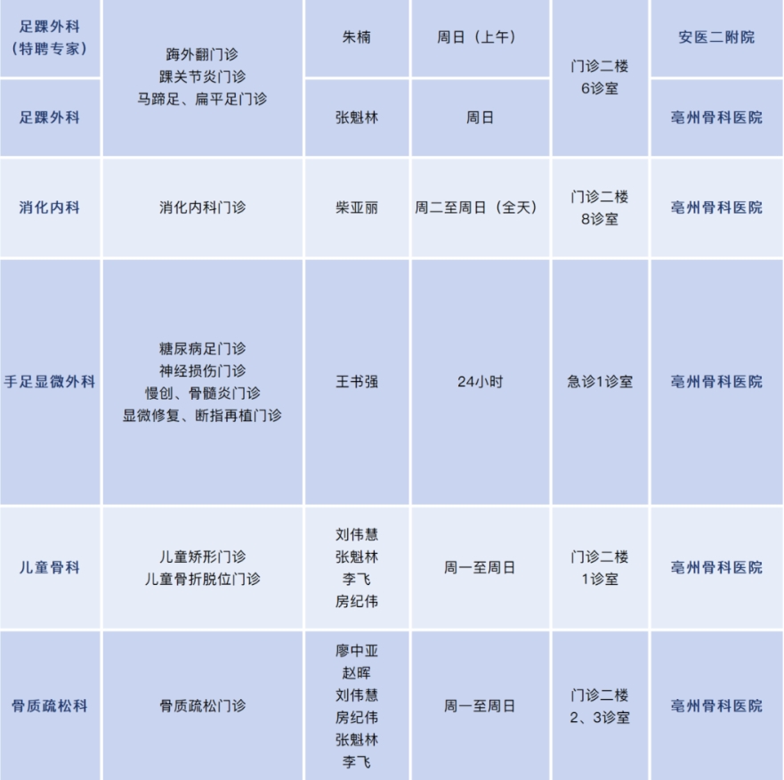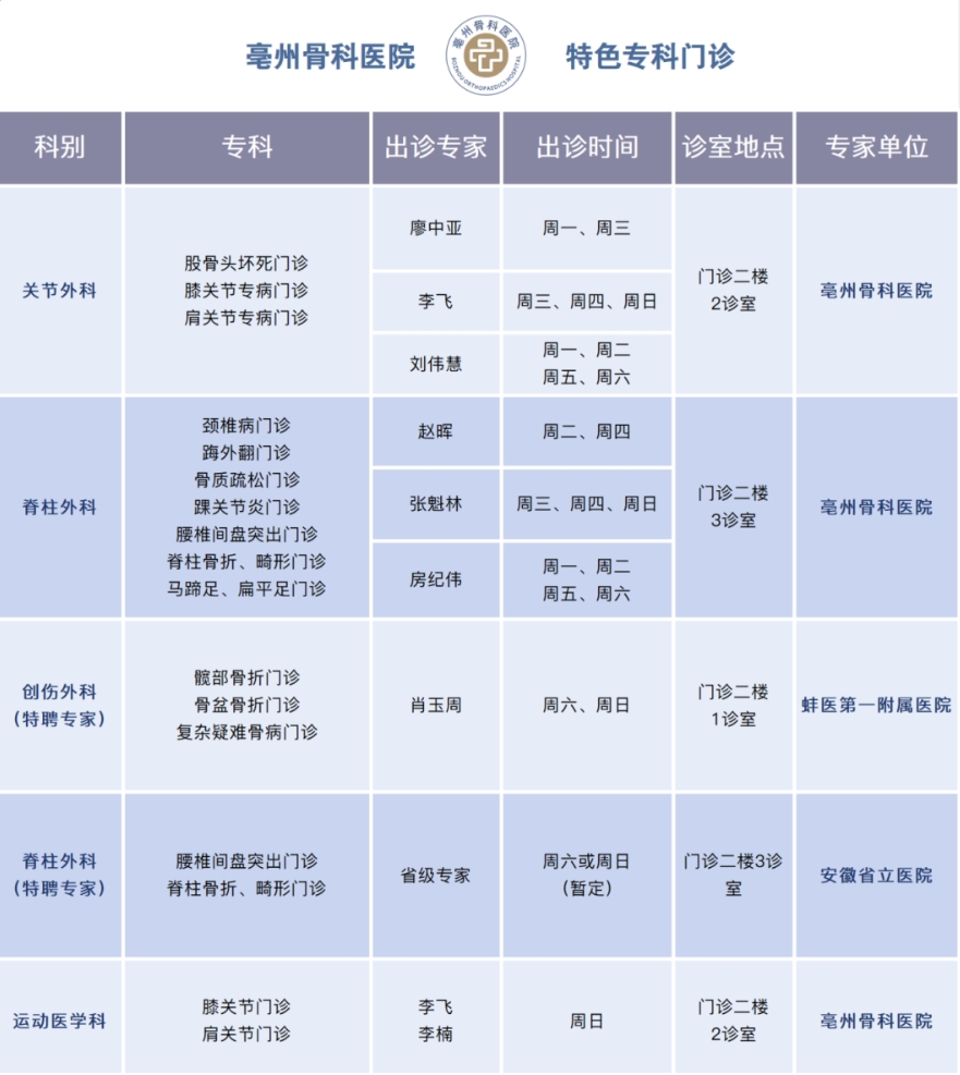 亳州骨科醫(yī)院特色??崎T診信息公示(2024年6月10日-16日)