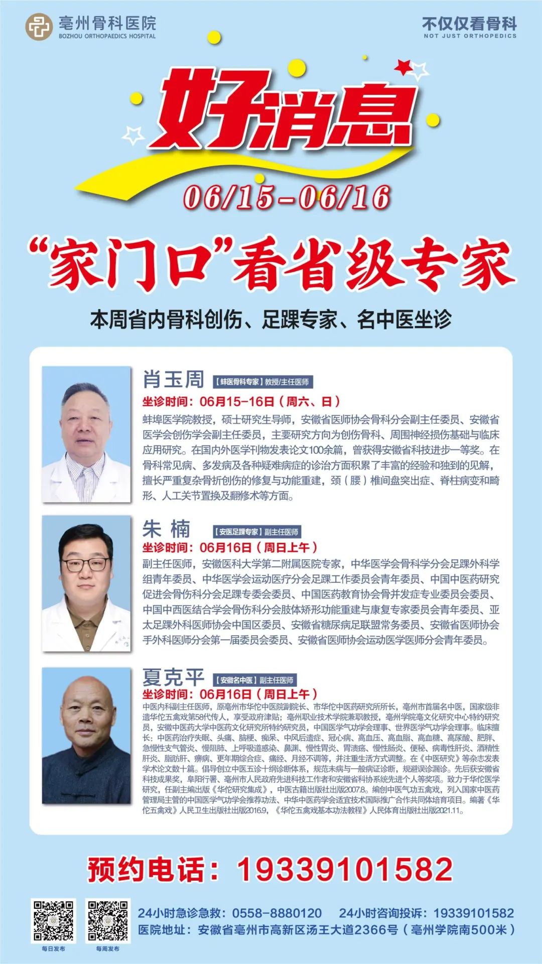 24小時(shí)急診急救電話:0558-8880120 24小時(shí)咨詢投訴:19339101582 普惠體檢中心:0558-5520830