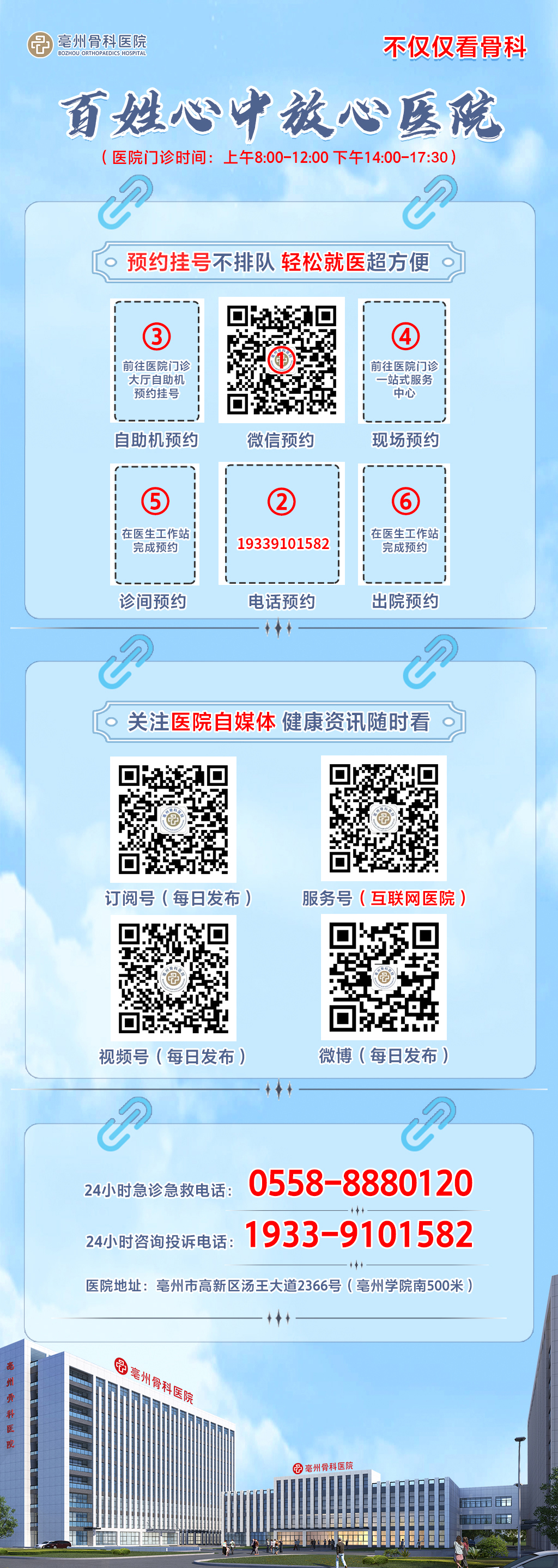 24小時(shí)急診急救電話:0558-8880120 24小時(shí)咨詢投訴:19339101582 普惠體檢中心:0558-5520830