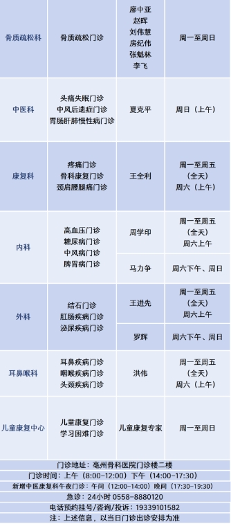 中秋假期期間,亳州骨科醫(yī)院將采取排班制度,全體醫(yī)護(hù)人員堅(jiān)守崗位,確保各科室、檢查、治療和手術(shù)等醫(yī)療服務(wù)一如往常。我們將竭盡全力為患者提供優(yōu)質(zhì)、專業(yè)的醫(yī)療體驗(yàn),讓您在假期中也能獲得周到、滿意的服務(wù)。