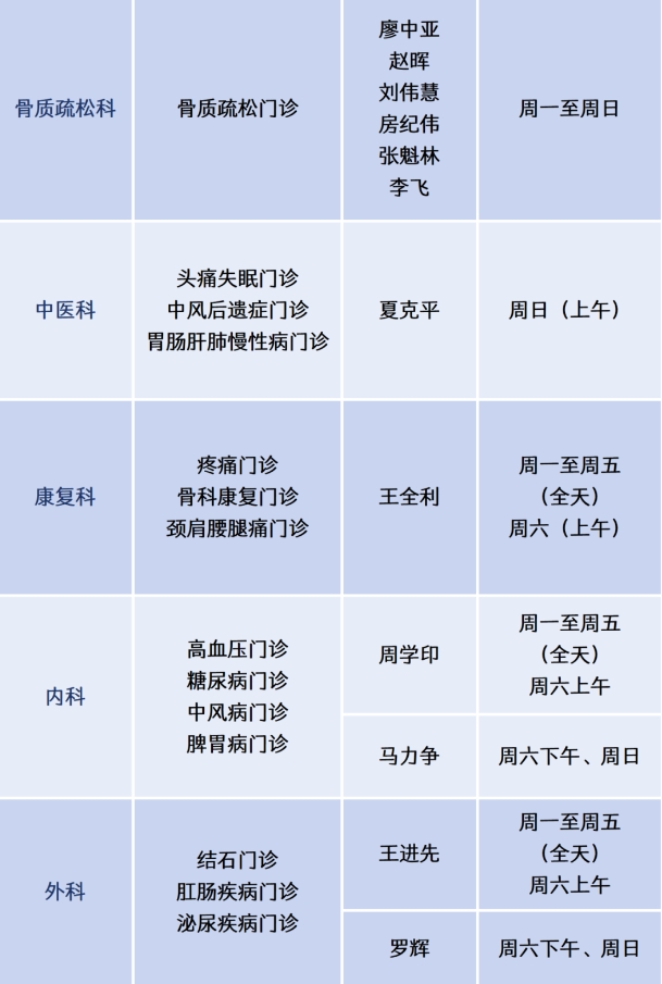 本周醫(yī)師排班表