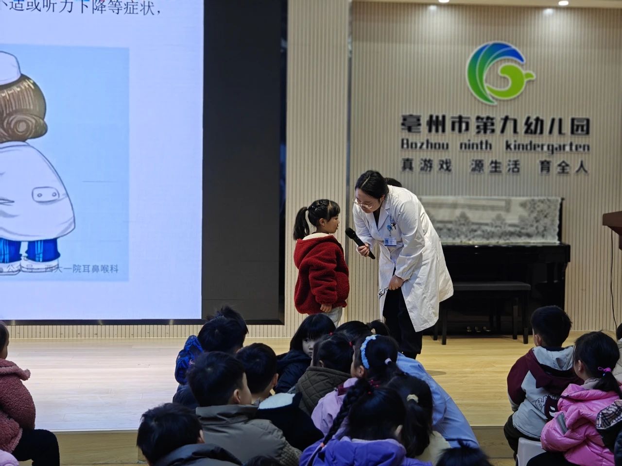 2025年3月3日是第26個(gè)“全國(guó)愛(ài)耳日”,亳州骨科醫(yī)院走進(jìn)亳州市第九幼兒園,開(kāi)展主題為“健康聆聽(tīng),無(wú)礙溝通”的愛(ài)耳系列活動(dòng)暨走進(jìn)校園評(píng)測(cè)活動(dòng)。聽(tīng)力是連接我們與世界的重要橋梁,普及愛(ài)耳護(hù)耳知識(shí),預(yù)防聽(tīng)力損失,讓每個(gè)人都能享有聆聽(tīng)世界的權(quán)利。