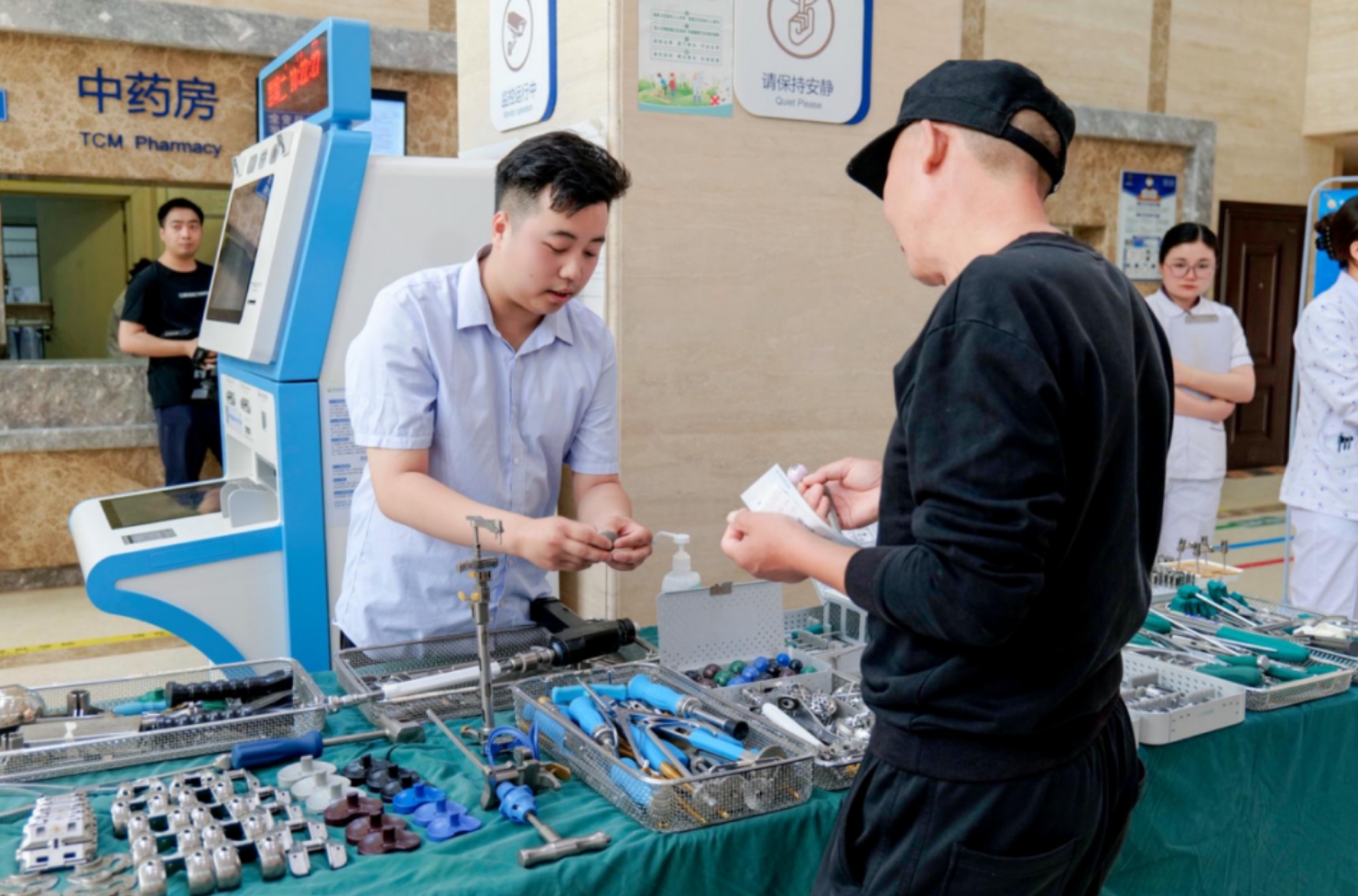 為提升患者和家屬對手術(shù)治療的認(rèn)知,在門診設(shè)立了骨科手術(shù)器械展示與科普區(qū),集中展示了人工關(guān)節(jié)置換相關(guān)器械以及骨折內(nèi)固定材料等。并配有專業(yè)人員現(xiàn)場答疑,幫助大家更直觀地了解骨折手術(shù)原理與康復(fù)過程,增強(qiáng)就診信心,提升患者滿意度。