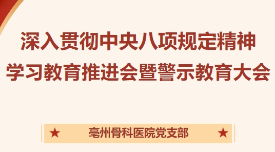 6月6日,中共亳州骨科醫(yī)院支部召開深入貫徹中央八項(xiàng)規(guī)定精神學(xué)習(xí)教育推進(jìn)會(huì)暨警示教育大會(huì),深入學(xué)習(xí)貫徹習(xí)近平總書記關(guān)于加強(qiáng)黨的作風(fēng)建設(shè)的重要論述和重要指示批示精神,通報(bào)違反中央八項(xiàng)規(guī)定及其實(shí)施細(xì)則精神典型案例。研究部署推動(dòng)學(xué)習(xí)教育走深走實(shí)的重點(diǎn)任務(wù),對(duì)深化以案促改促治,縱深推進(jìn)醫(yī)院作風(fēng)建設(shè)提出工作要求。會(huì)議由支部書記彭?xiàng)顐ブ鞒?,支部黨員及入黨積極分子參加會(huì)議。