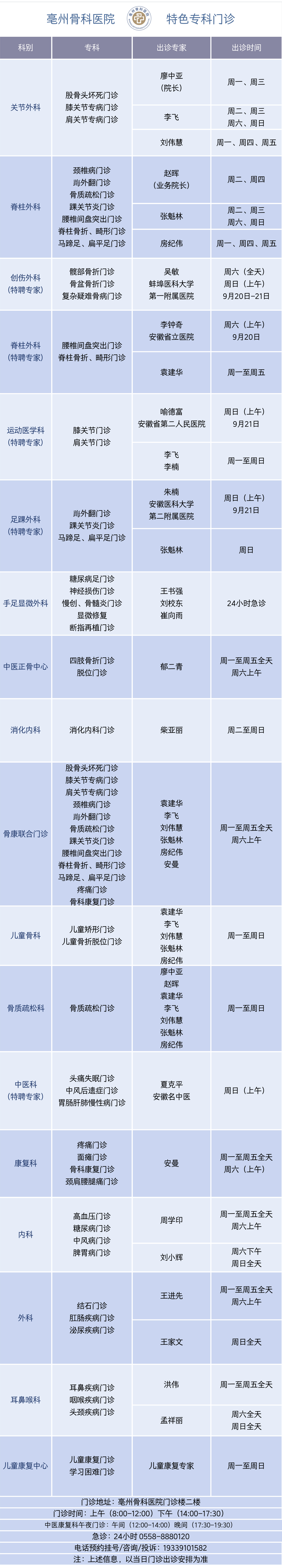 24小時(shí)急診急救電話:0558-8880120 24小時(shí)咨詢投訴:19339101582 普惠體檢中心:0558-5520830