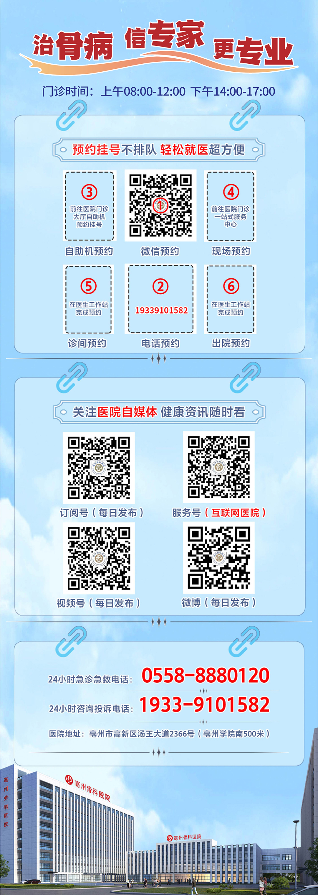 24小時(shí)急診急救電話(huà):0558-8880120 24小時(shí)咨詢(xún)投訴:19339101582 普惠體檢中心:0558-5520830