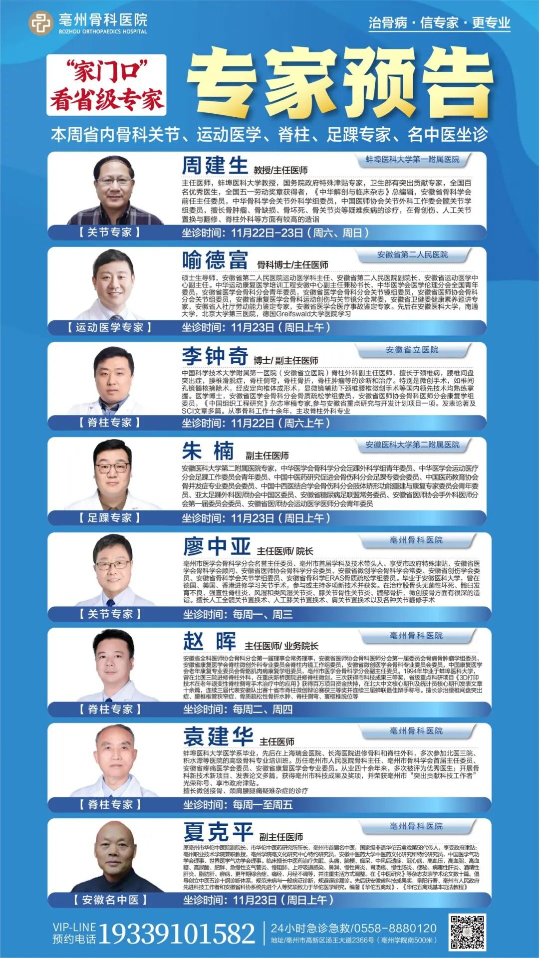 不論您是受到骨傷困擾,還是有運動損傷或足踝問題久治不愈的煩惱,專家們都將為您提供個性化的治療方案,助力您恢復健康,重煥活力人生!