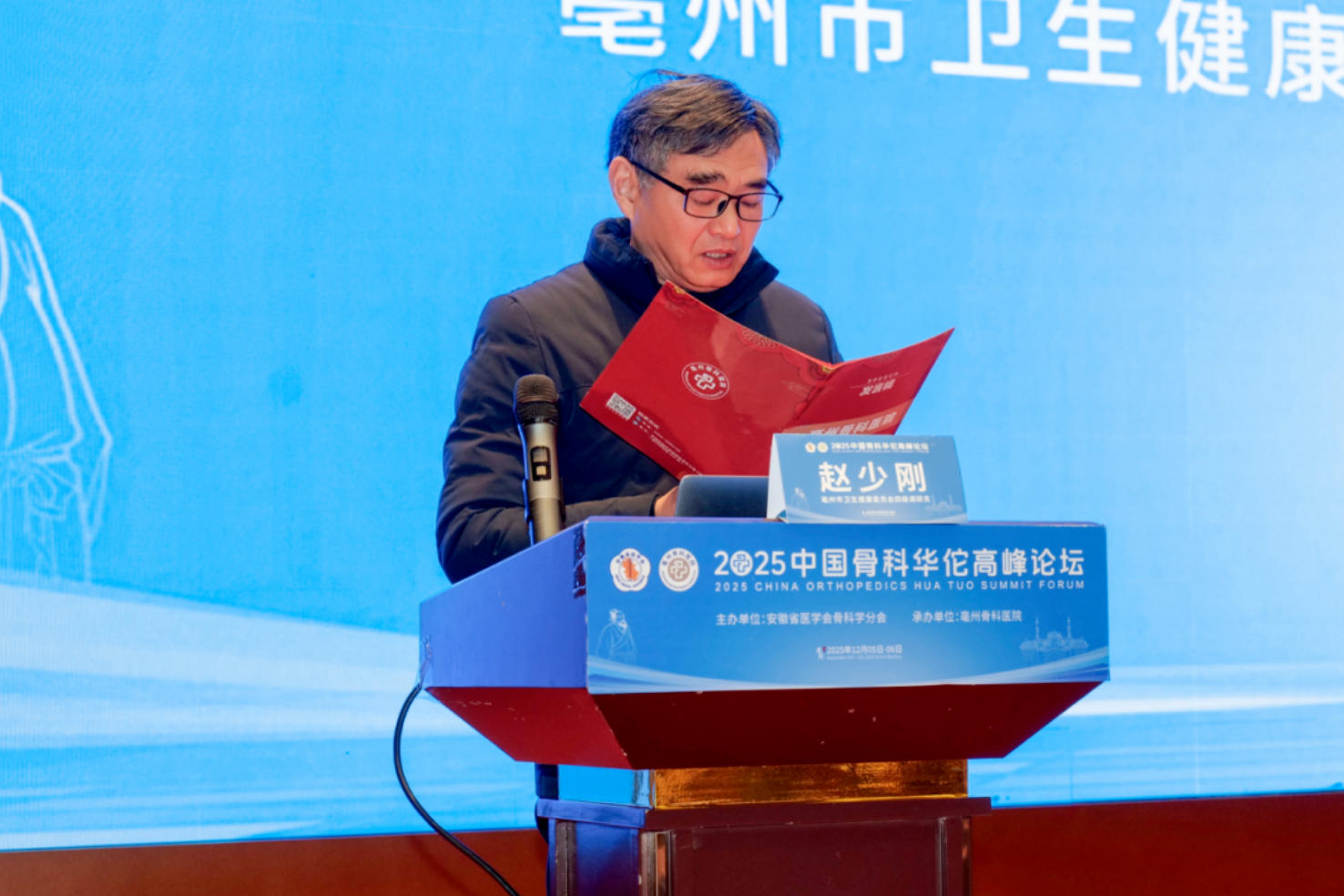 亳州市衛(wèi)生健康委四級調(diào)研員趙少剛致辭。他表示,市衛(wèi)健委將持續(xù)支持優(yōu)質(zhì)醫(yī)學(xué)學(xué)科在亳州落地生根,推動更多高水平學(xué)術(shù)活動走進(jìn)藥都,為群眾提供更加優(yōu)質(zhì)、高效、可及的骨科醫(yī)療服務(wù)。