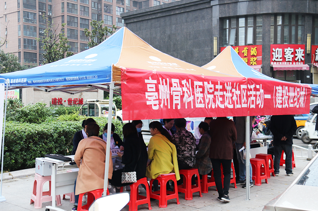 10月12日一大早,深受社區(qū)業(yè)主歡迎的“亳州骨科醫(yī)院義診活動(dòng)”,在建投世紀(jì)城小區(qū)如期拉開(kāi)了帷幕,為了能夠更好的服務(wù)大家,骨科醫(yī)院出動(dòng)了“骨科”、“內(nèi)科”、“康復(fù)科”以及“血壓、血糖醫(yī)護(hù)小組”等非常精干的主任醫(yī)師和醫(yī)護(hù)力量,可以說(shuō)陣容非常強(qiáng)大、醫(yī)診服務(wù)非常專業(yè),給建投世紀(jì)城和周邊小區(qū)業(yè)主帶來(lái)了福音。