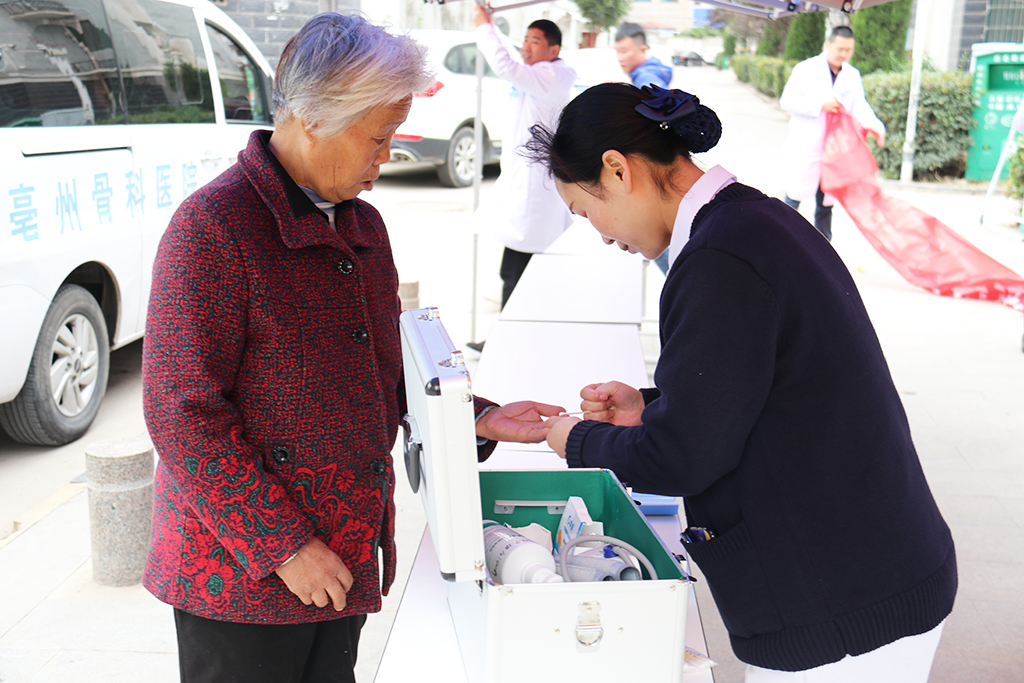 我們的美女護(hù)士微笑而用心的為每一個(gè)業(yè)主引導(dǎo)、測(cè)量、記錄,我們帥氣的醫(yī)師仔細(xì)而耐心的為每一位咨詢居民問詢、解答、分析,把亳州骨科醫(yī)院“修仁愛之德,濟(jì)一方百姓”的美好愿景實(shí)踐的樸實(shí)無華。