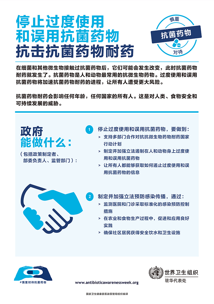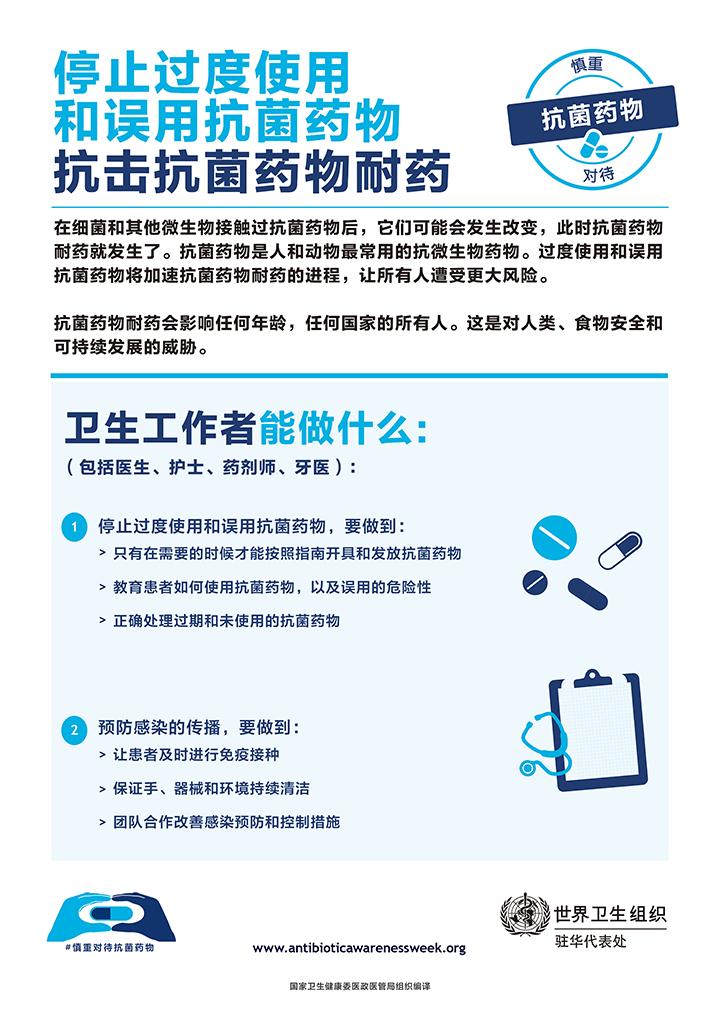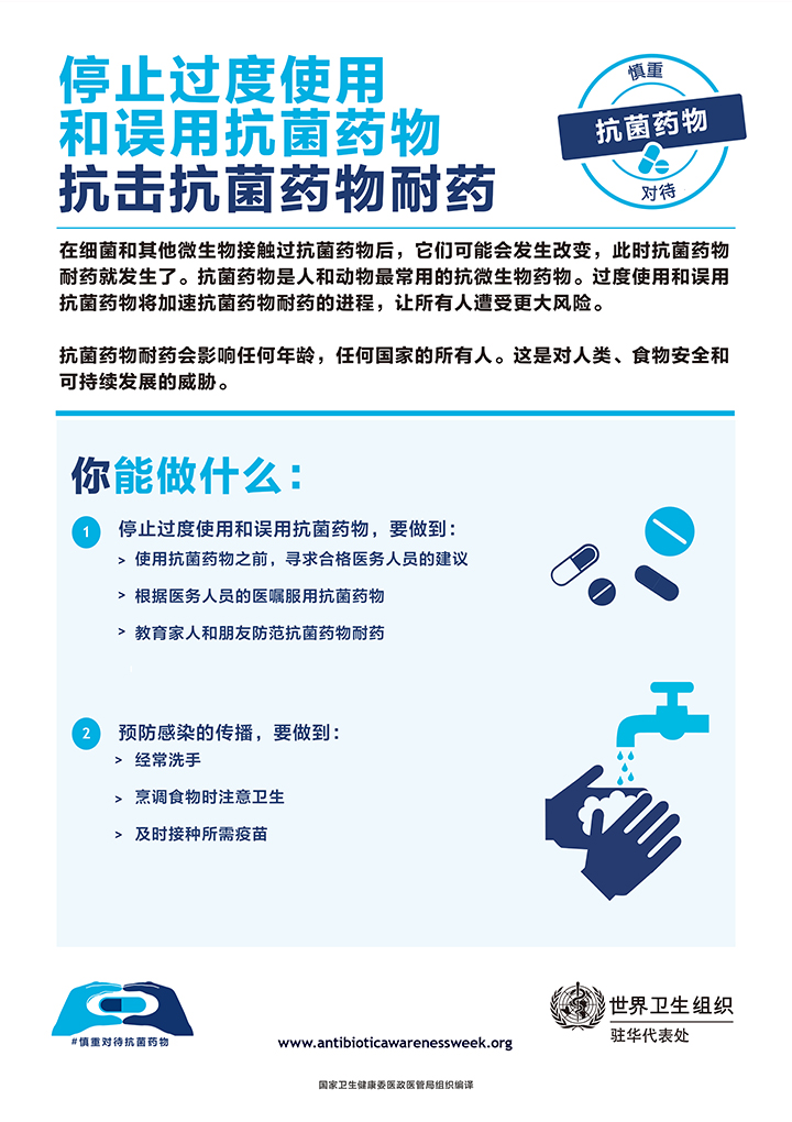 每年11月的第三周是世界衛(wèi)生組織確定的“世界提高抗菌藥物認(rèn)識(shí)周”。為積極應(yīng)對(duì)細(xì)菌耐藥帶來(lái)的挑戰(zhàn),提高抗菌藥物科學(xué)管理水平,也為了響應(yīng)國(guó)家衛(wèi)生健康委醫(yī)政醫(yī)管局11月18日-24日組織開(kāi)展“2019年提高抗菌藥物認(rèn)識(shí)周”活動(dòng)的號(hào)召。亳州骨科醫(yī)院將積極宣傳抗菌藥物合理使用知識(shí),提高社會(huì)公眾和醫(yī)務(wù)人員對(duì)細(xì)菌耐藥危機(jī)的認(rèn)識(shí)。與社會(huì)力量一起為“積極健康的醫(yī)療未來(lái)”添柴助力。