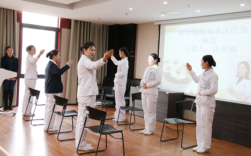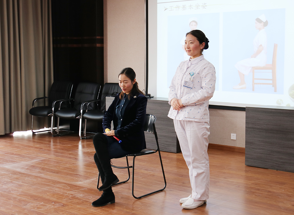 孫主任首先通過幾組護(hù)理同仁的禮儀演示,生動地展示了我院護(hù)理員工的優(yōu)雅形象,緊接著她為大家詳細(xì)講解了護(hù)理工作中應(yīng)該遵循的儀容儀表、儀態(tài)舉止、以及常用禮儀。并通過自己的躬親示范,為每一個動作指定標(biāo)準(zhǔn),讓每個員工深受啟發(fā),受益匪淺。