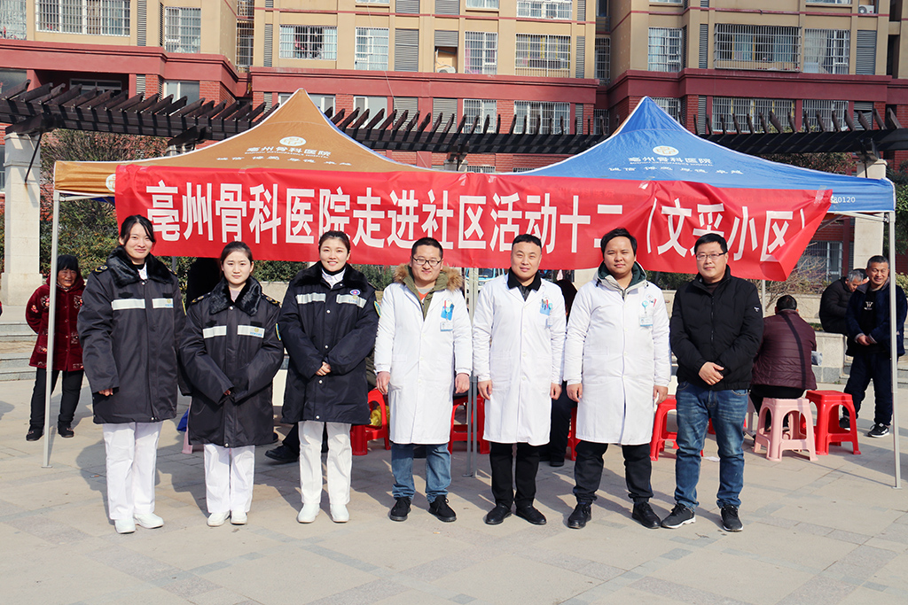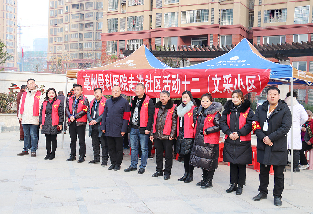 2019年12月21日周六,亳州骨科醫(yī)院的義診隊伍再次啟程,本次來到了環(huán)境優(yōu)美的文采社區(qū)(第四社區(qū))。